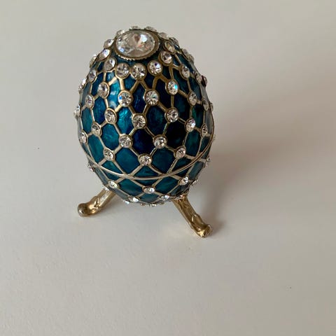 Flot kopi Fabergé æg i hvid og blå emalje- cloisonné, med forgyldt sølv. Stemplet med 925.