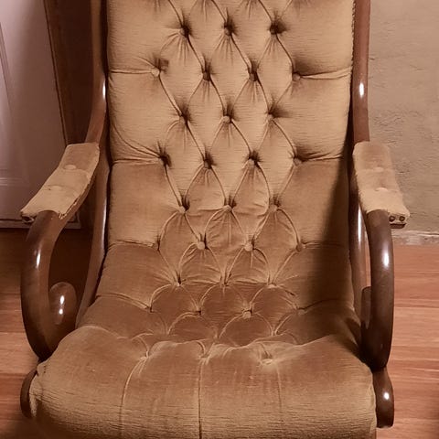 Chesterfield gyngestol med skammel. Fungerer fint. Måske et emne til ombetrækning