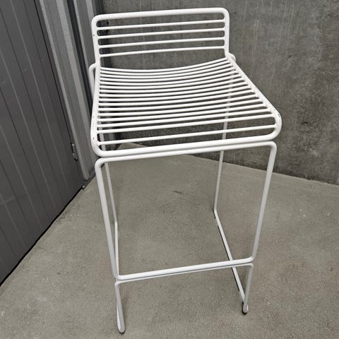 Sort barstol i mat sort metal fra Hay, modellen hedder Hee. Barstolen er helt ny og er ikke taget i brug. Siddehøjde er 75 cm / ryghøjde 86 cm. Gummi gliders medfølger.