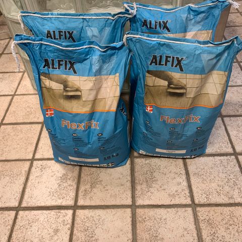 Alfix ProFix Plus fliseklæber i en 18 kg pose. Produktet er beregnet til fleksibel fliseopsætning. Velegnet til brug ved montering af fliser.