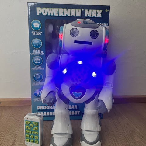 Robotten virker med alle funktioner + lys og lyde. Kan gå baglæns og forlæns, dreje hovedet til højre og venstre, danse, fortælle vittigheder, læse højt og spille musik.