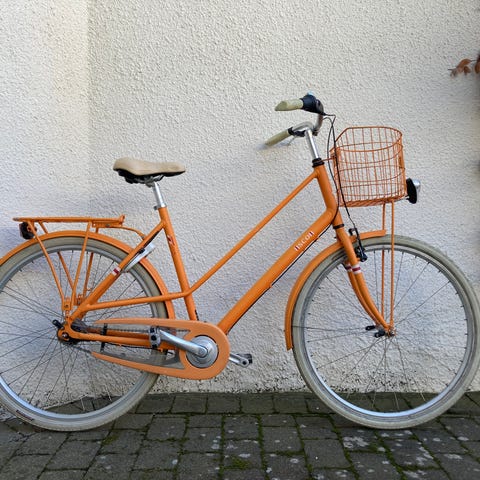 Damecykel SCO, 7 gear, 54 cm stel, ny kæde, næsten ny bag dæk,med lygter, reflekser, rigtig flot og velholdt cykel 100% køreklar alt fungerer tip top kører perfekt.
