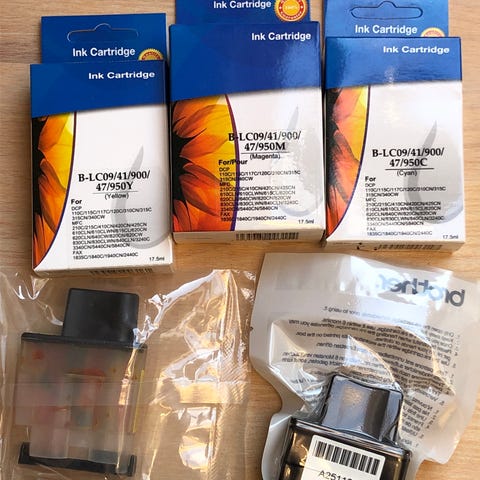 3 nye Originale Brother blækpatroner sælges. LC225XL, LC225XL M ogLC225XL Y samt et rabatkort til en gratis påfyldning. De har aldrig været pakket ud, plomberede poser, og det er XL patroner. 200,- for dem alle. Odense NV