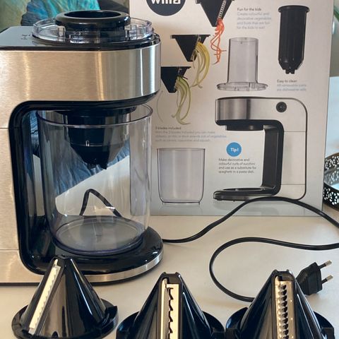 Wilfa spiralzer husholdningsapparat i rustfrit stål med 3 tilhørende skærerskiver Designet til at skære ingredienser effektivt i køkkenet. Fremstillet i rustfrit stål og plastmaterialer. Løsdele tåler opvaskemaskine
