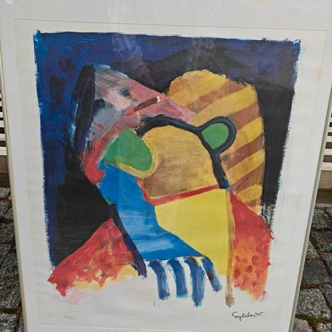 Skønt stort billede (masonitplade ) af Leif Sylvester 1986 signeret