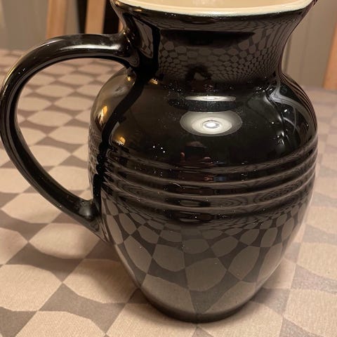 Le Creuset kande med en kapacitet på 1,1 liter. Fremstillet i sort keramik med en klassisk form og hank. Velegnet til servering af drikkevarer.