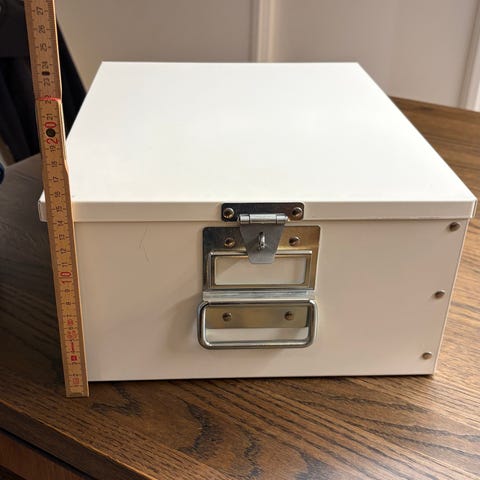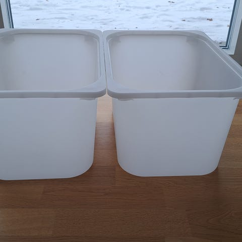 IKEA opbevaringskasse i hvid plast. Velegnet til opbevaring af forskellige genstande i hjemmet eller børneværelset.