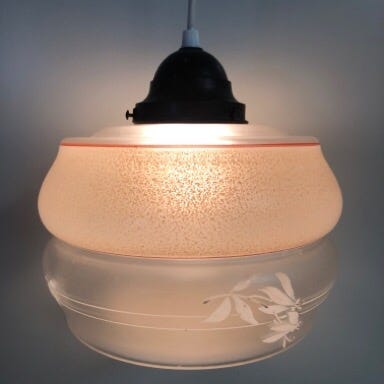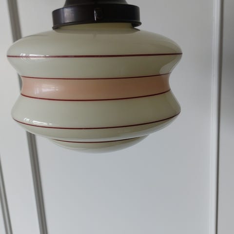 Smuk lampe i opalglas sælges. Der er noget med ophænget som skal fastgøres bedre, men det er til at løse. Alternativt kan lampen stå som en bordlampe. Glasskærmen er utrolig smuk.