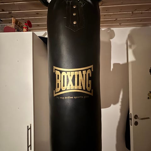 Adidas boksepude- godt brugt men stadig med mere leg eller træning i. Handskerne der medfølger er børne
