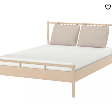 Björksnäs sengeramme inkl lameller sælges. Har været samlet og skilt en enkelt gang, men alle dele er der og den skulle være lige til at samle igen. Puderne skal dog bindes på sengen.