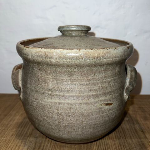 Keramik krukke med låg og ansigt dekor