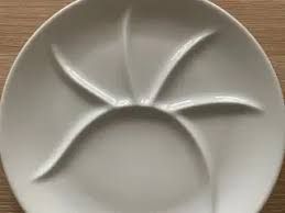 Dette er et sæt af fire tallerkener med en diameter på 31,5 cm. Tallerkenerne har forskellige farvede kanter: en er rød, og en er gul. De har en klassisk rund form med hvide midterområder. prisen er for alle 4.