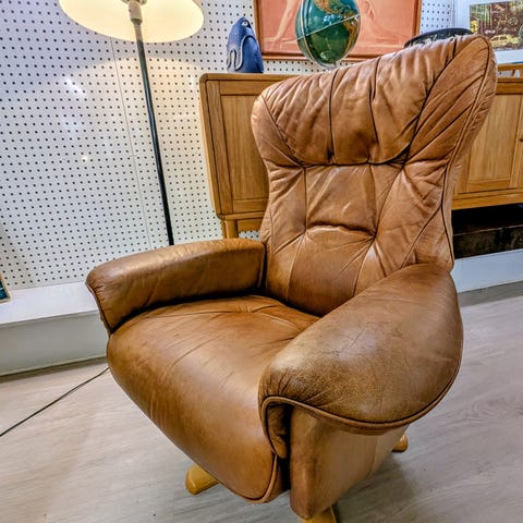 Et stk. Skalma. læderlænestole af dansk kvalitet med rigtig god siddekomfort kan dreje. Den er i rigtig god stand har stået til pynt i stue 2 så brugt meget lidt. Ny pris 15.000 kr. sælges for kun 2.495 kr. Tlf 40742594