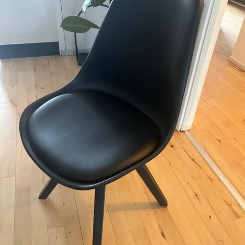 4 brugte spisebordsstole kan afhentes på søndag kl 11 i Humlebæk på 1. sal