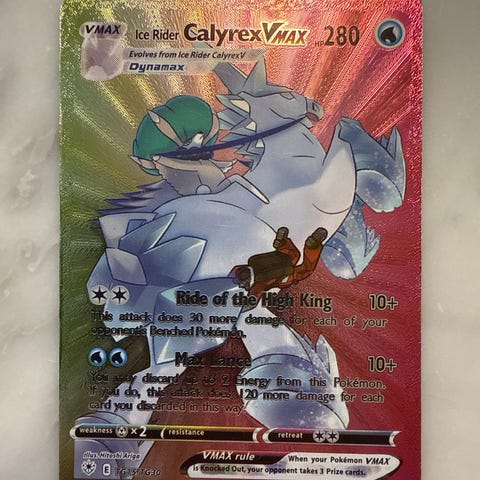 Pokémon VMAX Calyrex Vmax samlekort med 320 HP. Kortet har evnen Underworld Door og angrebet Max Geist. Kortet er en del af Pokémon kortspillet og kan anvendes til samling eller spil.