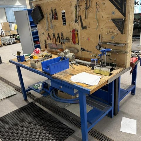 Værkstedsbord med værktøj.