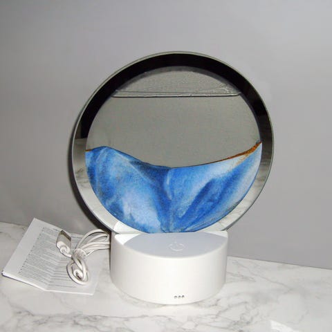 Denne led krystal lampe er købt i Superbrugsen og den kan skifte farver ved hjælp af den medfølgende fjernbetjening. Lampen er cirka 20 cm høj og kan tilsluttes via USB. Brugsanvisning medfølger.