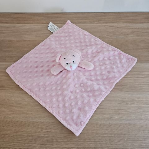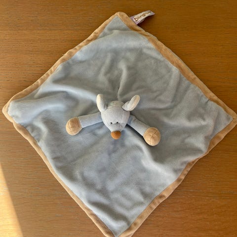 Denne nusseklud er formet som en giraf og lavet af blødt plys. Forsiden er primært lysebrun, mens bagsiden er mørkebrun med diverse farvede mærker og mønstre på kanterne. Kluden har en størrelse på 26x27 cm og er ideel til små børn som en tryghedsklud eller krammeven. Kluden har broderet øjne på giraffens hoved, hvilket giver den et sødt og sovende udtryk. Mærket 'done by deer' kan ses på kluden.