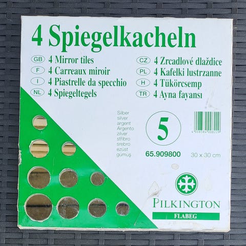 Seks fliser på 30×30cm. En af fliserne har en buet kant som set på billedet.