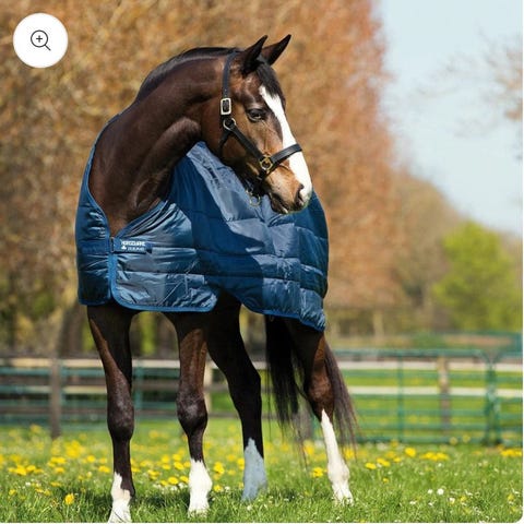 Horse Guard dækken i navy blå farve. Dækkenet er designet til at holde hesten varm og beskyttet ved forskellige vejrforhold.