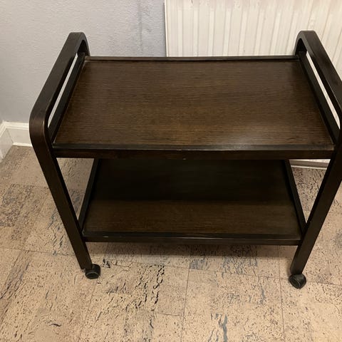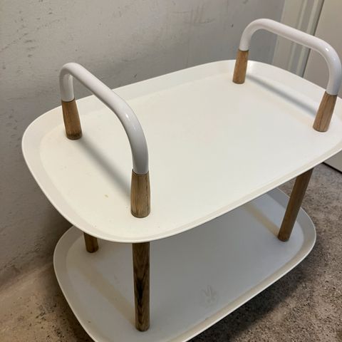 Dette rullebord / drinksbord er i overordnet set fin stand. Bakkerne har lette brugsspor og på de hvide bakker ses lidt gulligt smuds, som måske kan vaskes af / bleges.