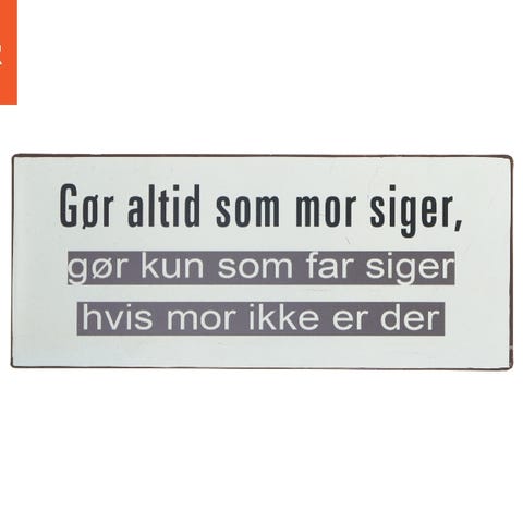 Metal skilt med tekst fra La Finesse (str. 10x5 cm)