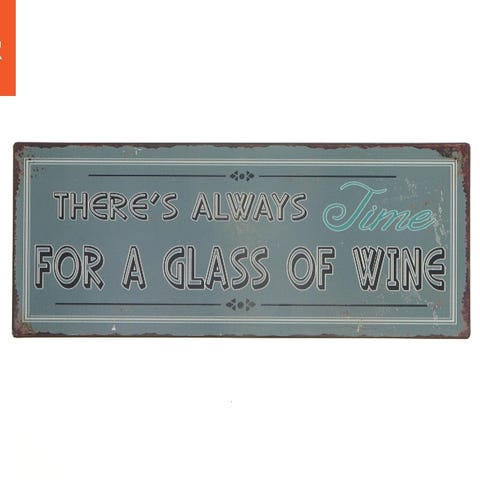 Dette er et vintage metal skilt med teksten 'The Best Tonic Has A Large Gin In It!'. Skiltet er rektangulært med dimensionerne 30,5x13 cm og har en rustik kantdesign, der giver det et antikt look. Bagsiden af skiltet er udstyret med kroge til nem ophængning, og der er en mærkat med en stregkode samt brandinformation fra 'Lafinesse.eu'. Skiltet kan bruges som dekoration i hjemmet eller som en sjov gaveidé til gin entusiaster.