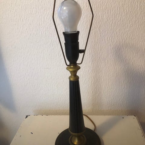 Skærm kan medfølge, om man ønsker. Fatning fra 1960erne af bakelit. Gyldenbrun ledning fra samme periode. Virker fint.