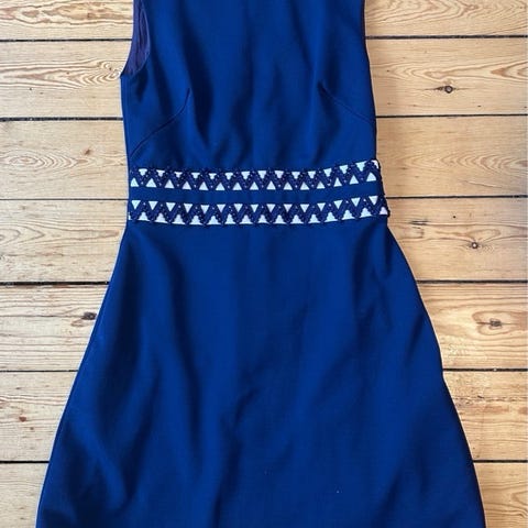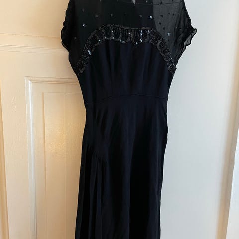Jeg sælger denne fine vintage kjole, som jeg købte i Stockholm for en del år tilbage. Jeg har kun brugt den et par enkelte gange. Den har "loops" til bælte, og jeg har muligvis det originale bånd liggende et sted. Jeg vil gerne prøve at finde det, hvis nogen er interesseret :)
