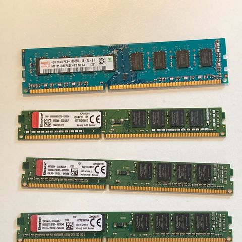 4 stk. M378B5173BH0-CK0 DIMM Non-ECC DDR3 1600MHz 240pin 4GB, pris pr. stk. kr. 100,-