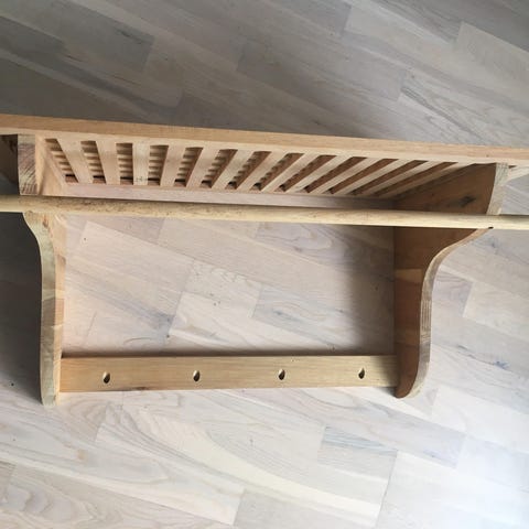Enkel reol sælges. Pæn stand, kun få ridser. Højden kan justeres en smule, så reolen kan stå lige på fx ujævnheder i gulvet.