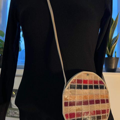 Denne taske fra Bulaggi er lavet af sort skind med krokodilleprægning og har en gylden metalramme og lukning. Tasken har en justerbar skulderrem og en lukning med en gylden kugle på toppen. Målene på tasken er 20x16 cm.