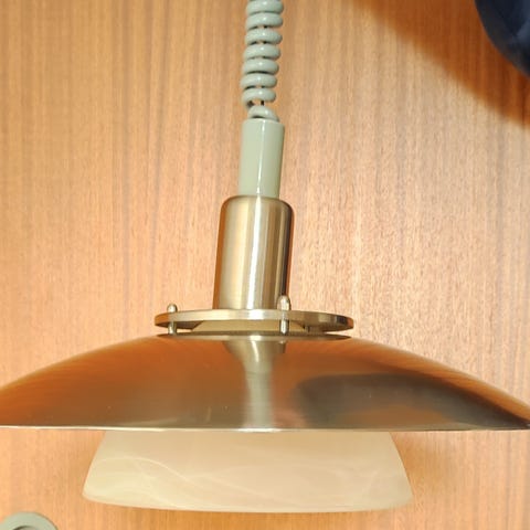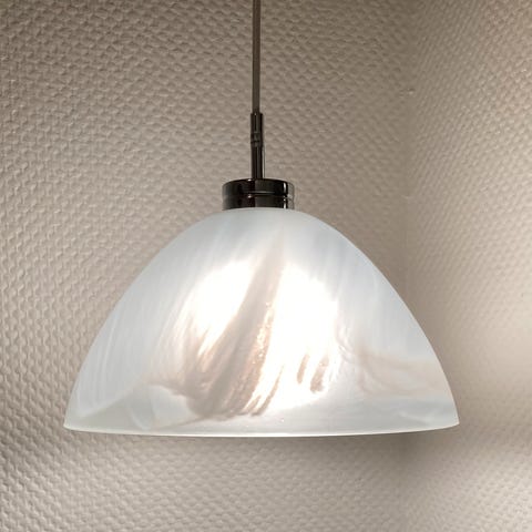 Denne pendellampe har en moderne stil med en skærm i frostet glas og blank metalfinish detaljer. Lampen kommer med en ledning og fatning, klar til installation. Størrelsen af skærmen er Ø 19,5 cm, hvilket gør den ideel til mindre områder eller som en del af en lampegruppering.