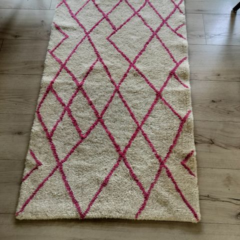 H&M Home tæppe i størrelsen 70x140 cm, lavet af bomuld. Tæppet har et mønster med farvede prikker og kan anvendes som dekorativt gulvtæppe eller til andre tekstile formål i hjemmet.