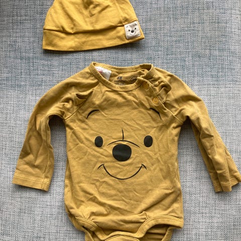 Langærmet body til spædbørn i hvid farve. Den har et Disney-motiv på forsiden med figurer omgivet af små hjerter. Trykknapper på forsiden og bunden for nem påklædning.
