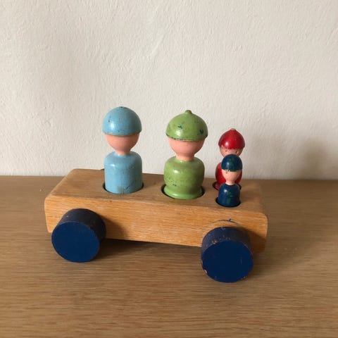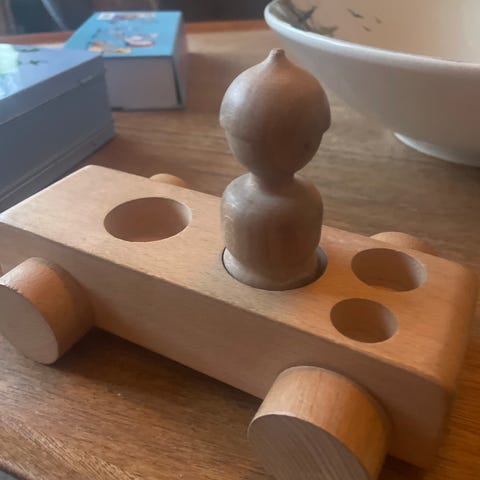 Dette er en fanebærer figur i træ designet af Kay Bojesen, som er kendt for sine ikoniske træfigurer. Figuren bærer en dansk fane og er 22 cm høj. Den kommer i en original emballage, der illustrerer produktet med billeder og tekst. Figuren har en rød uniform med hvide detaljer og blå bukser.
