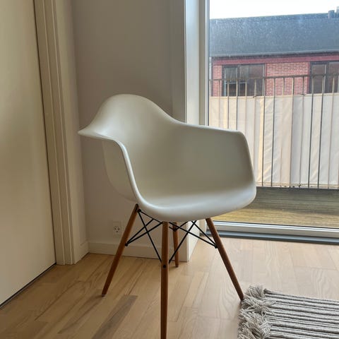Stolen er hvid, men er en smule misfarvet enkelte steder, grundet solen. Pris er til forhandling :)