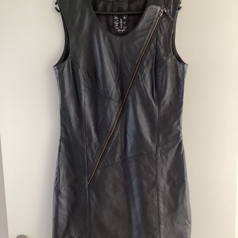 Cool kjole fra Vadum i super blødt skind med foer, og lynlåslukning foran. Kort model. Kan også bruges udenpå tights eller bukser som en overdel.