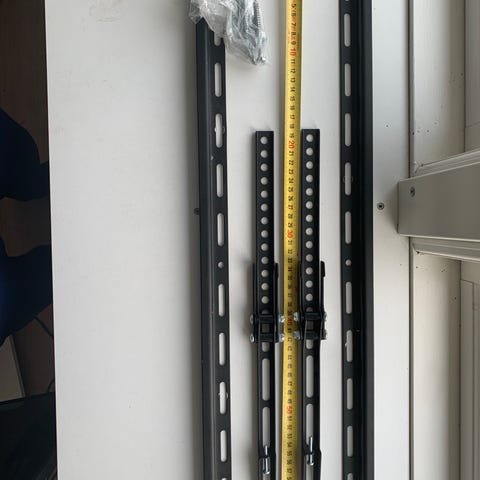 Solidt ophæng til fjernsyn af en vis størrelse. Kender desværre hverken mærke eller godkendt bæreevne, men se målene på billedet - forventer det kan bære en del.