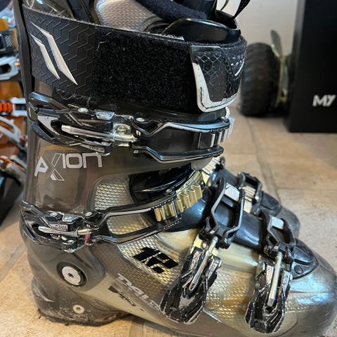 Dalbello Avanti AX 120 herre skistøvler i størrelse 27,5 (42-43). Skistøvlerne har fire spænder og en justerbar powerstrap for optimal pasform. Billigere at købe disse frem for at leje og så har du også til næste år :-)
