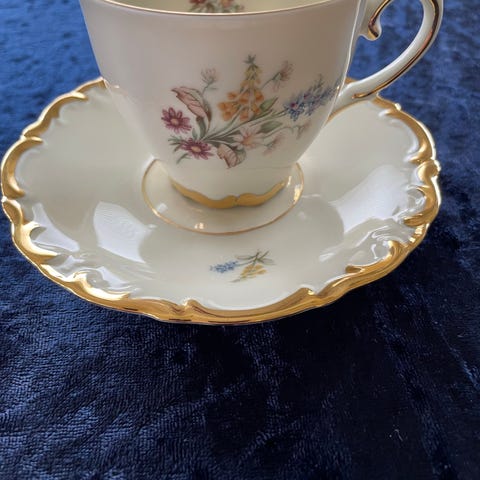12 kaffekopper og undertallerkner. Pris pr. stk. kr 50,00