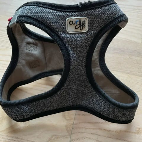 Curli hundesele i str. xs lavet af sort mesh materiale. Selen er designet til hunde og har justerbare stropper samt metalringe til fastgørelse.