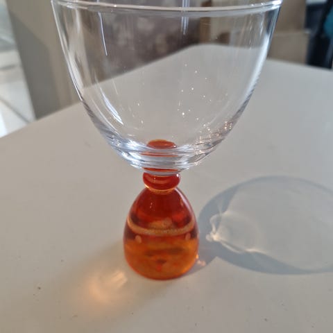 4 stk. Pernille Bülow DotCom hvidvinsglas med en klar overdel og fod i glas. 100 kr stk i farverne: