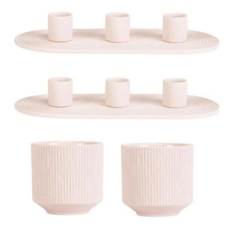 Lysene er lavet med løst stearin og placeret i smukke keramiske skåle i rolige, nordiske farver.