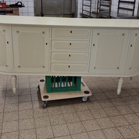 Væghængt skænk hvid med sorte og træfarvede fronter