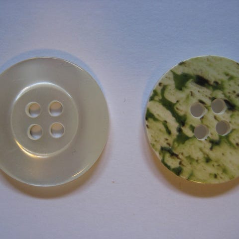 Forskellige knapper fra en nedlagt produktion. De er derfor ikke brugt. Alle knapper er af plastik.