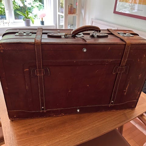 Vintage brun kuffert i læder og stof