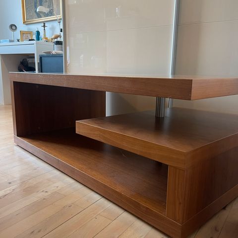 BoConcept Chiva coffee table in walnut. It has built in storage and the tables can be raised.