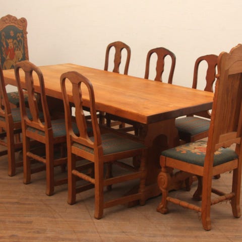 Sættet fremstår i pæn, brugt stand og har masser af karakter. Perfekt til dig, der ønsker kvalitet i ægte træ frem for moderne finer – og som har brug for fleksibilitet, når gæsterne kommer.