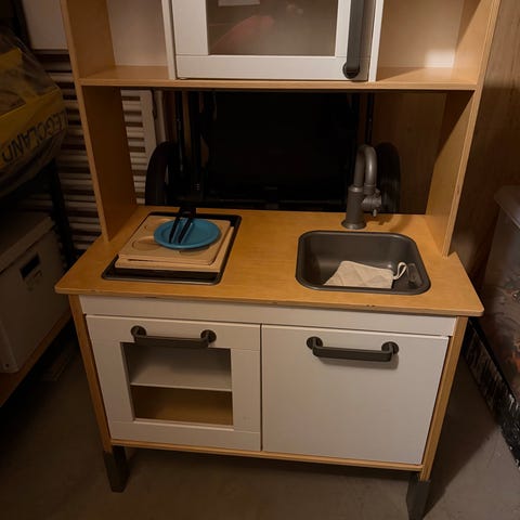 Børnekøkken i god stand med lys i kogepladerne, der virker.